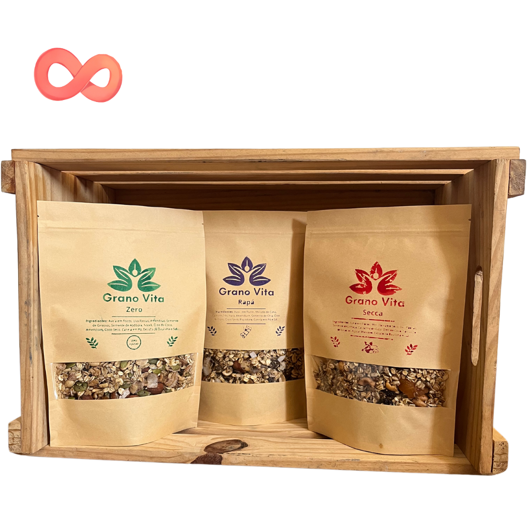 Grano Vita Secca: Uma combinação irresistível de castanha-de-caju, sementes de linhaça e girassol, levemente adoçada com mel. Uma granola naturalmente doce, ideal para quem busca sabor e nutrientes em cada porção.